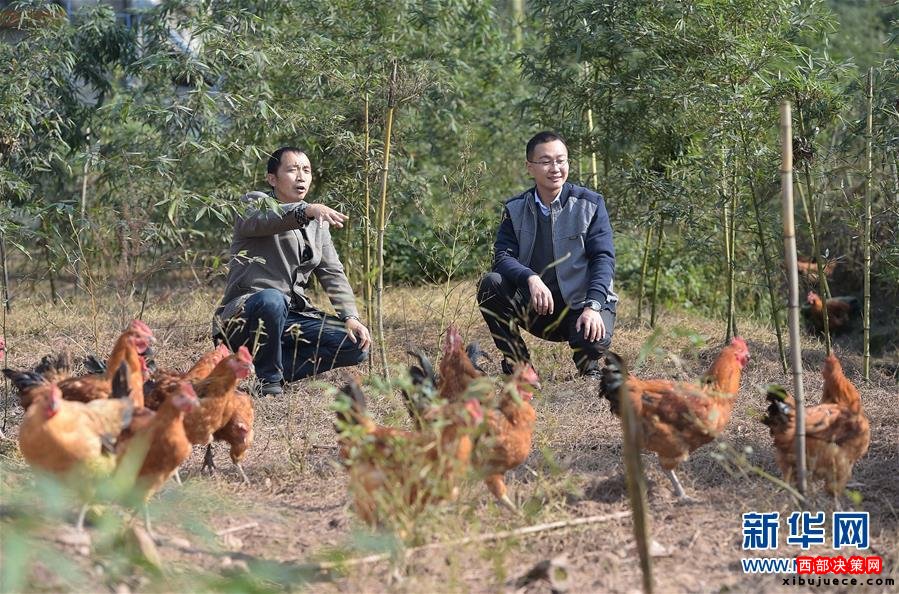 李寶強(右)在一戶百姓家了解林下養(yǎng)雞情況(2015年11月25日攝)。李寶強,眉山市青神縣瑞峰鎮(zhèn)天池村“第一書記”。為集中力量打好脫貧攻堅戰(zhàn),四川省選派1.5萬名優(yōu)秀機關(guān)干部到建檔立卡貧困村任職“第一書記”。黨的十八大以來,以習(xí)近平同志為總書記的黨中央高瞻遠矚、深謀遠慮,以高度的政治感、使命感和責(zé)任感,把扶貧開發(fā)工作提升至治國理政新高度,廣泛凝聚社會各界力量,推進實施精準扶貧方略,為到2020年全面建成小康社會奠定堅實基礎(chǔ)。按照中央部署,通過產(chǎn)業(yè)扶持、轉(zhuǎn)移就業(yè)、易地搬遷、政策兜底等方式,到2020年將實現(xiàn)7017萬農(nóng)村貧困人口脫貧目標。新華社記者 薛玉斌 攝