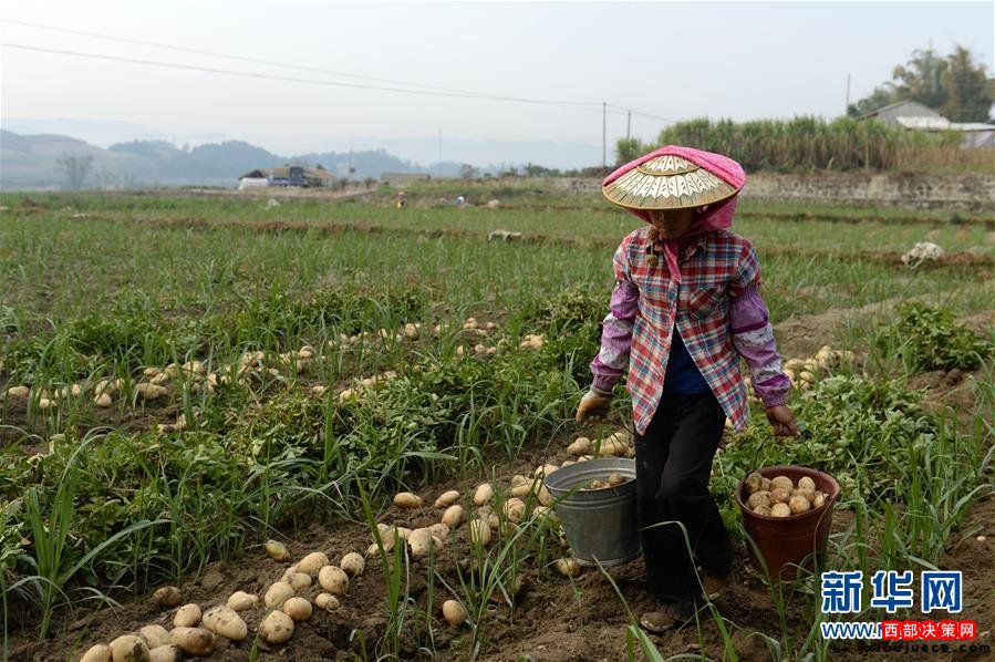 云南省德宏傣族景頗族自治州芒市軒崗鄉(xiāng)農(nóng)民提著采挖好的馬鈴薯準備前去裝箱。當?shù)伛R鈴薯每畝產(chǎn)值近6000元,是村民增收的主要途徑之一(2014年3月21日攝)。近年來,云南省大力推進扶貧攻堅,走出了一條整村、整鄉(xiāng)、整縣、整州推進的扶貧開發(fā)新路子。黨的十八大以來,以習(xí)近平同志為總書記的黨中央高瞻遠矚、深謀遠慮,以高度的政治感、使命感和責(zé)任感,把扶貧開發(fā)工作提升至治國理政新高度,廣泛凝聚社會各界力量,推進實施精準扶貧方略,為到2020年全面建成小康社會奠定堅實基礎(chǔ)。按照中央部署,通過產(chǎn)業(yè)扶持、轉(zhuǎn)移就業(yè)、易地搬遷、政策兜底等方式,到2020年將實現(xiàn)7017萬農(nóng)村貧困人口脫貧目標。新華社記者 胡超 攝