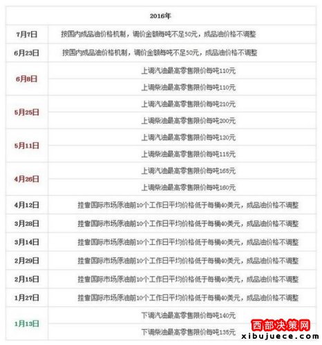 國(guó)家發(fā)改委歷次成品油價(jià)格調(diào)整匯總表。來(lái)源:隆眾石化網(wǎng)