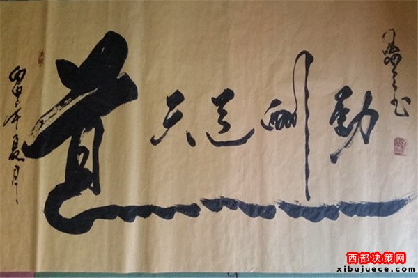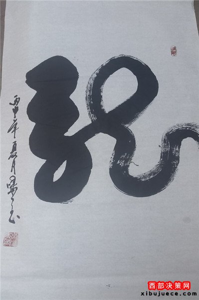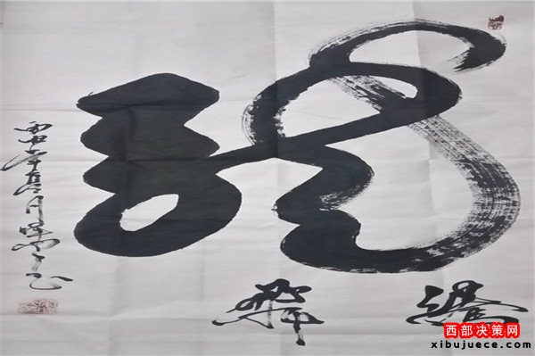 龍乃華人想象中最尊貴、最吉祥之物。生活之中無所不在,上下五千年,仍一以貫之,舉世無與倫比。華人更以龍的傳人自居,一旦風起云涌,海生駭浪,則龍卷風云,霞光萬丈。其“一筆龍”書法作品將書法和繪畫非常巧妙的而高度的融合,依易經智慧,集意念、氣功為一體,運筆如神,酬勁有力,一氣呵成,氣勢磅礴,形象逼真。整個字體呈現出一條蒼龍騰躍飛天之勢,寓意了中國龍騰飛吉祥的福兆,更展現了中華民族不屈不饒的民族精神。
