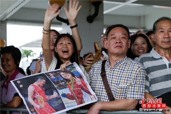 8月29日,里約奧運(yùn)會(huì)國(guó)家奧運(yùn)精英代表團(tuán)抵達(dá)澳門,展開一連4天的訪問(wèn)行程,與澳門市民近距離交流。 中新社記者 張宇 攝