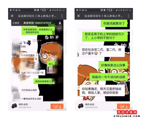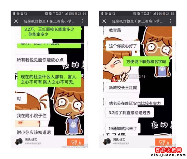 近日,一則題為《延安微信招生(3.2萬保上新城小學(xué))請相關(guān)部門給予調(diào)查公布真相》的帖子在朋友圈瘋傳,內(nèi)容是一位微信名叫“延安微信招生(保上新城小學(xué))”的微友,聲稱只要花3.2萬元,保證可以在新區(qū)小學(xué)入學(xué),并解釋有中間人,錢并不是直接給校長王紅霞,但愿意提供自己的車號、身份證號、家庭住址等信息作為擔(dān)保。3.2萬真的能夠保上延安新區(qū)小學(xué)嗎?事情真相究竟如何,記者展開調(diào)查。