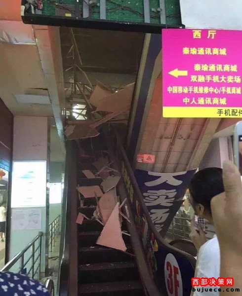 (通訊員 展?。?nbsp;今天中午1點(diǎn)左右,西安市西華門海星智能廣場(chǎng)四樓賣場(chǎng)電梯頂?shù)蹴斖蝗幻撀洹I虘魝冋f,房頂是木質(zhì)結(jié)構(gòu),坍塌毫無預(yù)兆。事故所幸暫時(shí)沒有人員受傷!