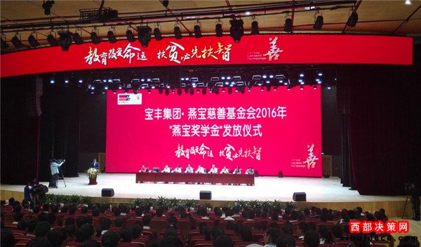 昨天上午,寶豐集團(tuán)·燕寶慈善基金會(huì)2016年“燕寶獎(jiǎng)學(xué)金”發(fā)放儀式在寧夏銀川市舉行。捐贈(zèng)儀式上,寶豐集團(tuán)·寧夏燕寶慈善基金會(huì)獎(jiǎng)勵(lì)9.2萬(wàn)名學(xué)子,發(fā)放獎(jiǎng)學(xué)金2.64億元,新增受助學(xué)生2.6萬(wàn)人。