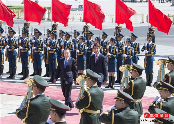 8月31日,國務(wù)院總理李克強(qiáng)在人民大會堂東門外廣場為特魯多舉行歡迎儀式。