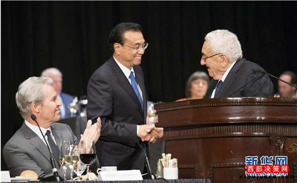 李克強(qiáng)表示,基辛格博士45年前訪華時(shí),中美貿(mào)易幾乎為零。45年后的今天,中美貿(mào)易額占全世界貿(mào)易總量的五分之一,中美經(jīng)濟(jì)總量之和占世界經(jīng)濟(jì)總量的三分之一。我們的貿(mào)易和投資量如此之大,自然難免有分歧摩擦,但我們之間的共同利益遠(yuǎn)大于誤解和分歧。我們正在進(jìn)行的雙邊投資協(xié)定談判就是向兩國工商界發(fā)出中美進(jìn)一步擴(kuò)大相互開放和投資的積極信號。希望美方采取務(wù)實(shí)靈活態(tài)度,與中方共同努力達(dá)成高水平、互利共贏的雙邊投資協(xié)定。兩國可以通過更多貿(mào)易與人員往來,坦誠溝通,增進(jìn)理解與互信,推動中美關(guān)系朝著穩(wěn)定向好的方向繼續(xù)前行。