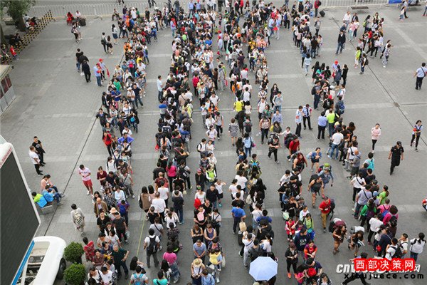 除了游5外,西安火車站廣場發(fā)往華清池、兵馬俑的914路、915路公交車也被游客擠爆。(記者魏永賢)