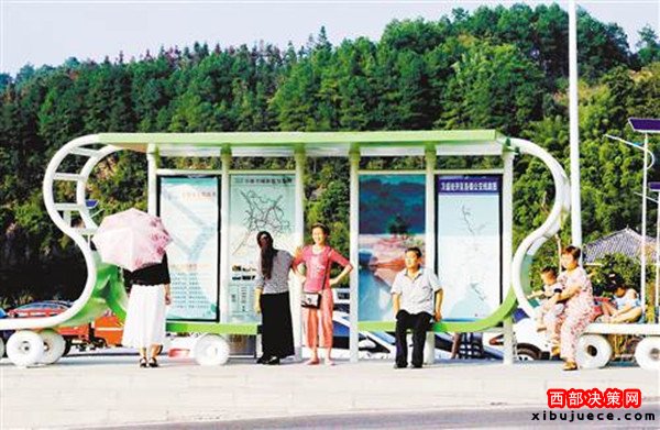 目前,萬盛至金橋鎮(zhèn)全線設(shè)置的7個新型棚式公交車站全部完工并投入使用。