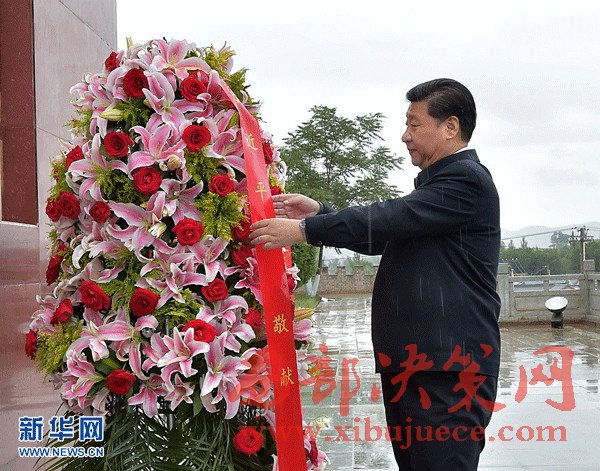 2016年7月18日至20日,中共中央總書記、國家主席、中央軍委主席習(xí)近平在寧夏調(diào)研考察。這是7月18日上午,習(xí)近平在固原市西吉縣將臺(tái)堡向紅軍長(zhǎng)征會(huì)師紀(jì)念碑敬獻(xiàn)花籃。新華社記者李濤攝