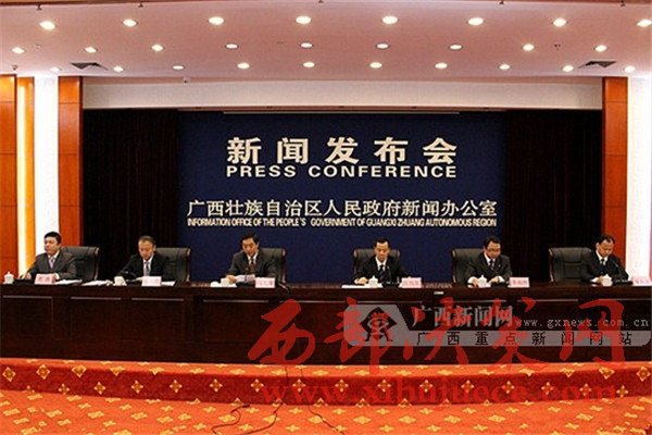 廣西重大水利項目進展情況新聞發(fā)布會現(xiàn)場。