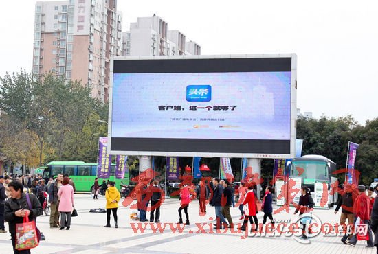 在農(nóng)高會(huì)的戶外大屏上,陜西頭條客戶端為群眾展示通過(guò)手機(jī)看農(nóng)高會(huì)的便捷方式
