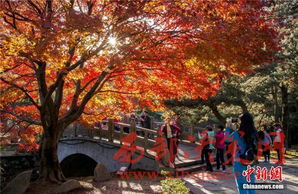 連日來,天氣晴好,江西廬山風(fēng)景區(qū)的紅葉已達(dá)到了最佳觀賞期。只見廬山植物園、花徑、如琴湖一帶萬眾期待的雞爪槭已經(jīng)悄然換上了紅妝,吸引著眾多游客和攝影愛好者的到來。