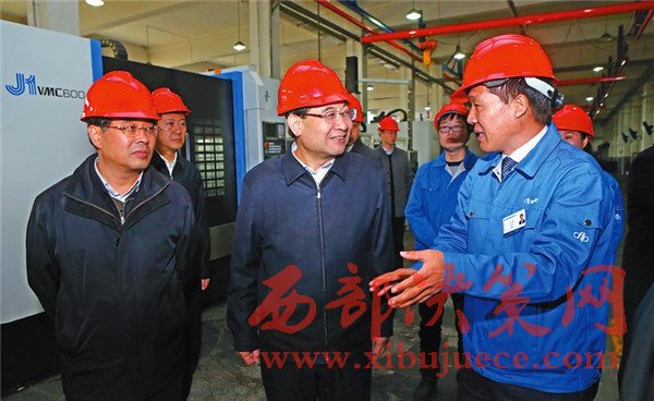 11月19日,省長胡和平在永壽縣陜西秦航機(jī)械制造公司向企業(yè)負(fù)責(zé)人詢問技術(shù)工藝,了解產(chǎn)品前景。