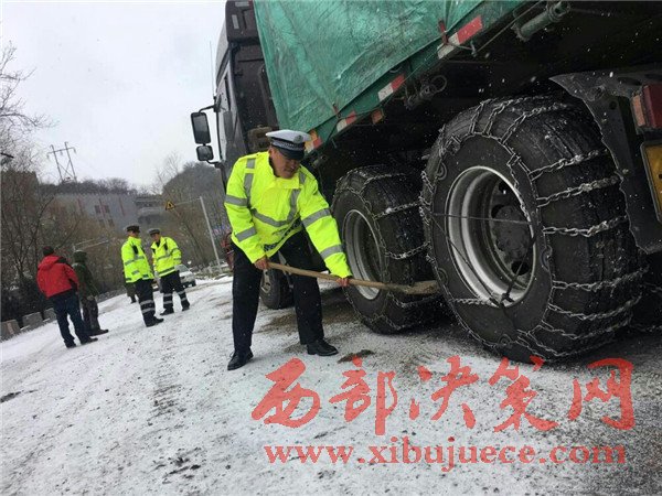 21日夜間,20余輛半掛車進(jìn)山,行至冰雪路面無法前行,滯留在路邊,導(dǎo)致道路擁堵。為進(jìn)一步加強(qiáng)路面管控,渭濱大隊(duì)迅速啟動(dòng)《冰、雪、雨、霧自然災(zāi)害等特殊氣候條件下道路交通安全保障應(yīng)急處置預(yù)案》,從22日早上7點(diǎn)開始,對四軸以上半掛車進(jìn)行交通管制。同時(shí),渭濱交警大隊(duì),鳳縣交警大隊(duì)黃牛埔中隊(duì)迅速聯(lián)系路政部門,對積雪路段采取拋灑融雪劑、防滑沙等措施。對部分滯留車輛大隊(duì)民警已第一時(shí)間趕赴現(xiàn)場進(jìn)行疏導(dǎo),并送去了熱水和食品,并從秦嶺兩端。