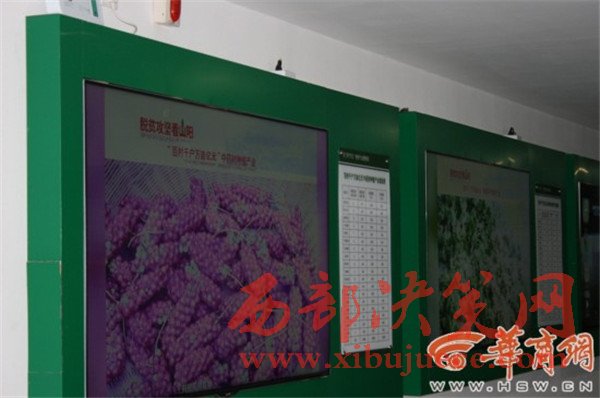 在山陽扶貧開發(fā)局辦公場所走廊,一側墻上安裝有6臺液晶電視看上去很顯眼,滾動播放著扶貧圖片和相關數(shù)據(jù)。