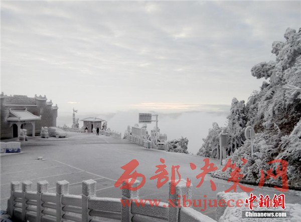 原標題:湖南南岳衡山現(xiàn)霧凇云海 房屋建筑披冰甲
