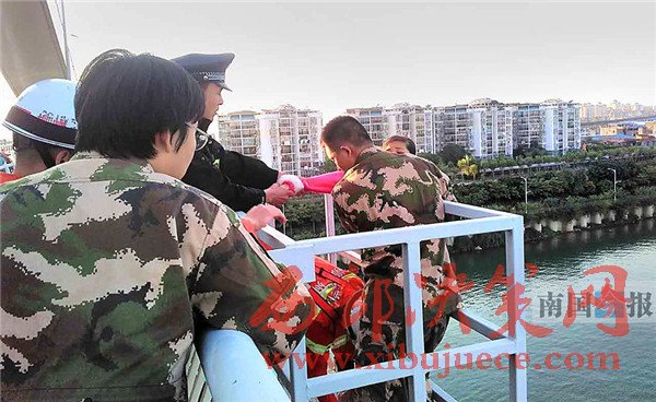 此時(shí),阿建已經(jīng)趕到橋頭,民警立即讓他先在遠(yuǎn)處等候,不要讓阿婷看見。通過(guò)阿建提供的電話號(hào)碼,民警聯(lián)系上了阿婷的父親,把電話撥通之后遞給阿婷,由其父親進(jìn)行勸說(shuō)。此時(shí),在旁的消防官兵綁好救生繩索開始伺機(jī)出手。