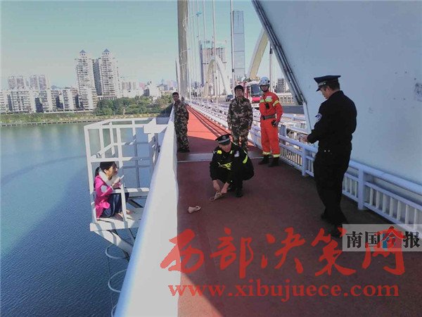 27日下午,柳州市廣雅大橋中段,有一名女子因感情問(wèn)題想不開,翻越護(hù)欄想要輕生,民警和消防官兵趕到現(xiàn)場(chǎng),經(jīng)過(guò)2個(gè)多小時(shí)的努力,終于抓住機(jī)會(huì)將其救下。