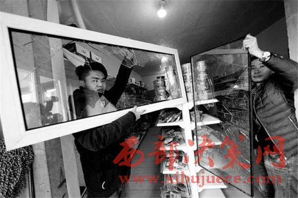 令趙女士沒想到的是,27日下午5點多,這群人又出現(xiàn)了。當(dāng)時趙女士的兒子田江正在里屋吃飯,外面的防盜門虛掩著,突然七八個男子帶著洋鎬把就沖了進(jìn)來,沖著貨架一通亂砸。田江說:“我聽見響動掀開門簾出來,都是蒙面的小伙,我聽清楚了對方的一句話‘還敢開還砸!’,我當(dāng)時看著對方人多,沒敢追。”目前,趙女士一家已經(jīng)報警,韋曲派出所正對此事做進(jìn)一步調(diào)查。