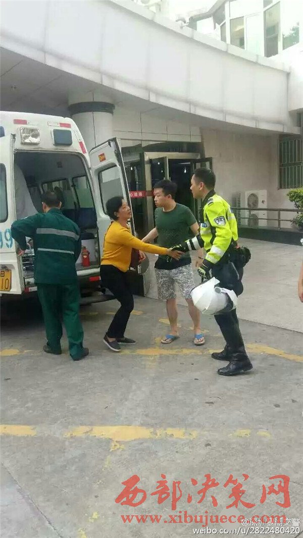 據(jù)現(xiàn)場(chǎng)目擊民眾@小蟲阿寶他爹:這輛救護(hù)車應(yīng)該走的丹平快速隧道,交警鐵騎開路,所有的車都自覺往兩邊靠,在兩排車道中間讓出了一條救命通道。我當(dāng)時(shí)就在隧道內(nèi)。圖為家屬感謝鐵騎隊(duì)員。