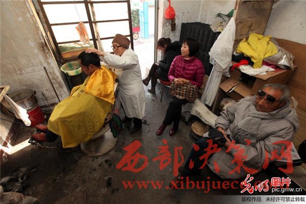 蔡瑞云幾十年來一直在河南許昌市區(qū)解放路與新興路交會處經(jīng)營著她的"老中青理發(fā)店"。雖然店面只有10平方米,每月房租300元,但每次理發(fā)收費卻只有2元,讓人感受到的是溫暖。