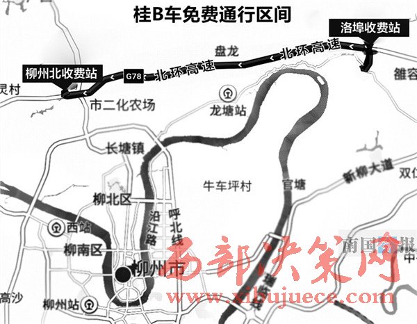 昨 日,記者從柳州市城市投資建設(shè)發(fā)展有限公司(下簡稱“城投”)了解到,城投和廣西交通投資集團(下簡“交投集團”)達成協(xié)議,對在柳州北環(huán)高速公路柳州北 收費站和洛埠收費站區(qū)間通行(即柳州北收費站入、洛埠收費站出,或洛埠收費站入、柳州北收費站出)的“桂B(yǎng)”車牌車輛(下簡稱“桂B(yǎng)車”),車輛通行費由 柳州市財政統(tǒng)繳,司機在收費現(xiàn)場不需付費。