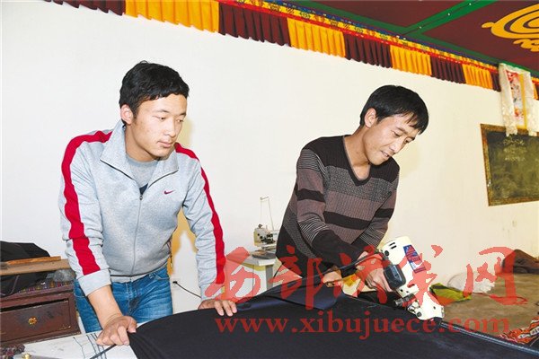 圖為曲水縣索朗雅卓縫紉農(nóng)民專(zhuān)業(yè)合作社的社員正在裁剪布料。
