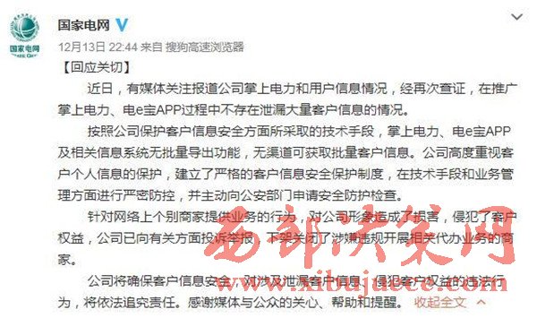 12月13日,有報(bào)道稱,自今年5月國家電網(wǎng)各地電力公司開始規(guī)模推廣掌上電力后,大量數(shù)據(jù)從各地供電公司流入淘寶,然后從淘寶店鋪倒賣至黑色產(chǎn)業(yè)鏈。這一消息之所以引發(fā)關(guān)注,在于國網(wǎng)公司作為全球最大公共事業(yè)公司,其經(jīng)營(yíng)區(qū)域覆蓋中國26個(gè)?。ㄗ灾螀^(qū)、直轄市),覆蓋國土面積的88%以上,供電人口超過11億人。