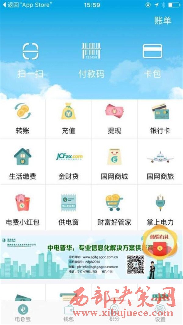 但最近半年來國網(wǎng)基層系統(tǒng)對(duì)電e寶的推廣力度正在加大。除了相同的充繳電費(fèi)功能外,電e寶還被賦予了更多進(jìn)軍電商及互聯(lián)網(wǎng)金融的野心。國家電網(wǎng)旗下英大系(英大期貨、英大基金、英大租賃、英大證券、泰和人壽、英大信托)接近集齊金融全牌照。澎湃新聞下載電e寶APP后發(fā)現(xiàn),主界面類似于簡(jiǎn)化版的支付寶,其中的生活繳費(fèi)功能也與支付寶類似,目前,已有部分地區(qū)可以用電e寶繳水費(fèi)。