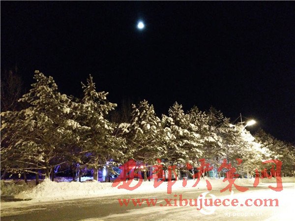 有“山水畫卷 生態(tài)邊城”美譽的新疆哈巴河縣環(huán)境良好、風(fēng)光優(yōu)美,就連風(fēng)雪彌漫之夜也如畫卷一般美麗迷人。
