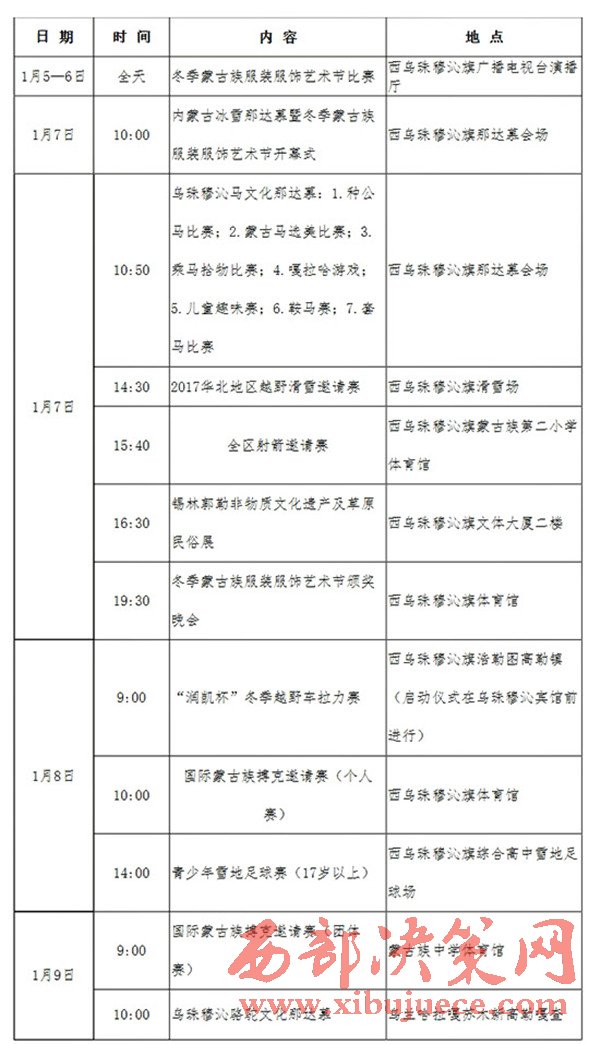 附:第十四屆內(nèi)蒙古冰雪那達(dá)慕暨第七屆冬季蒙古族服裝服飾藝術(shù)節(jié)主要活動(dòng)日程安排表