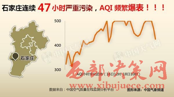 其中,從16日起,河北石家莊更是出現(xiàn)了連續(xù)47小時的嚴重污染,AQI指數(shù)頻繁“爆表”。