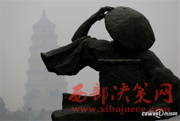 重度霧霾下的大雁塔失去了千年古色,稍遠一點看大雁塔若隱若現(xiàn),再走遠一點大雁塔在視線中消失。