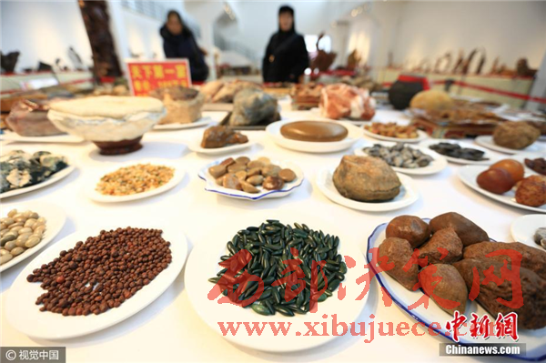 2016年12月19日,湖北省襄陽(yáng)市,一桌包含128道石頭菜的“天下第一宴”在一家古玩城展出。這桌“菜”價(jià)值188萬(wàn)元。