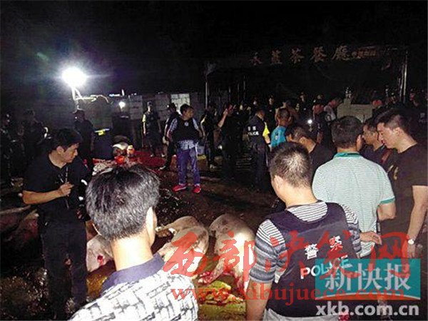 簡(jiǎn)陋的棚子、污水橫流、滿地豬血、隨意擺放的工具……這是私宰生豬場(chǎng)的真實(shí)場(chǎng)景。新快報(bào)12月21日?qǐng)?bào)道,深圳警方查處一私宰豬肉犯罪團(tuán)伙。據(jù)悉,在廣東省深圳市、東莞市,藏匿著5個(gè)生豬私宰窩點(diǎn),警方此次行動(dòng)繳獲作案車輛20余臺(tái),抓獲嫌疑人42名,繳獲私宰生豬150余頭,合約2.6萬(wàn)斤。此次行動(dòng)是深圳近年來(lái)破獲的打擊處理人數(shù)最多,唯一實(shí)現(xiàn)產(chǎn)、運(yùn)、銷全鏈條打擊的私宰案件。