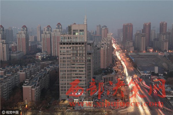 2016年12月22日,西安,在經(jīng)歷前日一場(chǎng)風(fēng)吹之后,困擾古城西安10余天的霧霾逐漸散去。加上昨天是二十四節(jié)氣中的冬至,也是一年當(dāng)中黑夜最長(zhǎng)的一天,當(dāng)日一早,鳥(niǎo)瞰城市,雖然已是早7點(diǎn)半,但仍然是燈火闌珊。清晨城市車(chē)水馬龍,萬(wàn)家燈火、迎來(lái)新的一天璀璨的美景,停課兩天的學(xué)生終于重返課堂。