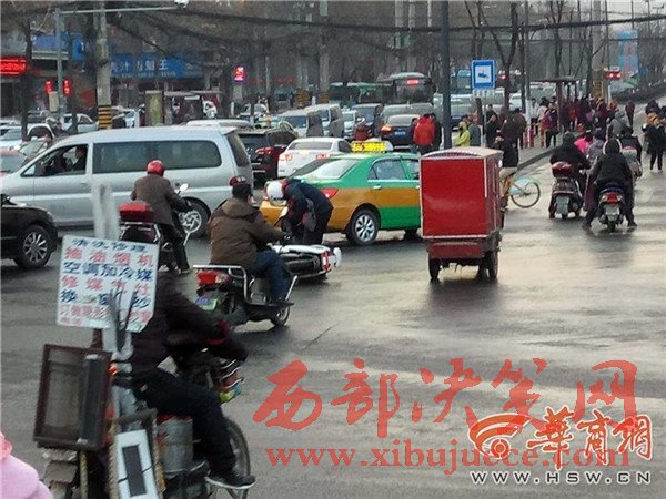 昨日,記者接到不少市民反映,因為路面灑水結冰,明光路與元朔路十字、咸寧西路興慶宮公園門口、昆明路、太華路立交等路段均發(fā)生車輛追尾事故。