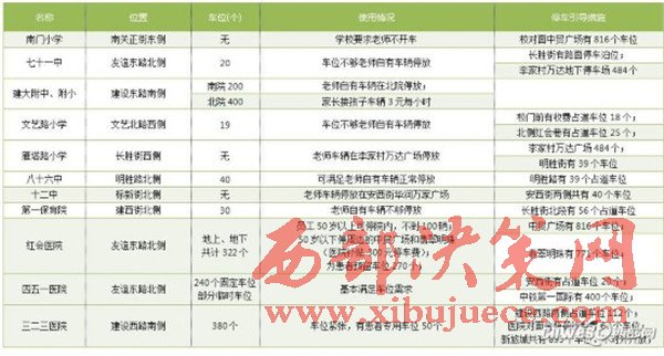 西安市交警支隊公布了碑林區(qū)內(nèi)首批重點醫(yī)院、學(xué)校周邊的停車場的位置以及車位數(shù)字。