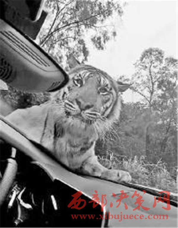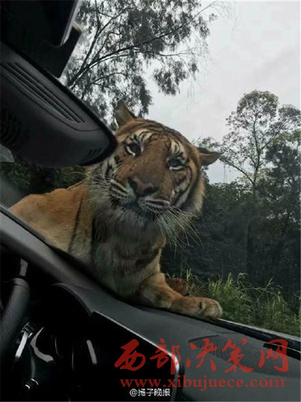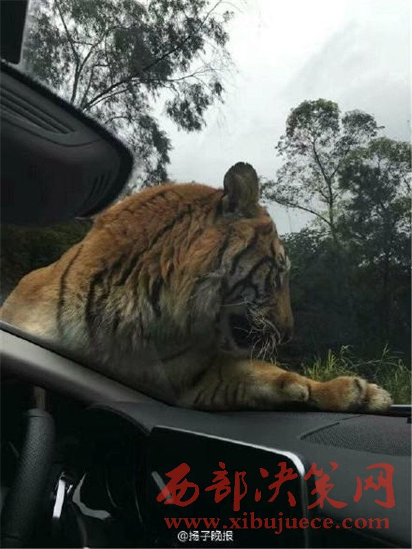 媒體分享的照片顯示,在樂和樂都自駕體驗區(qū),一只體型巨大的老虎攔下了一輛游客車輛,隔著擋風(fēng)玻璃向車內(nèi)張望,隨后又直接趴在了引擎蓋上。觀察到這一情況后,園區(qū)的工作車輛迅速趕到,將老虎驅(qū)離,整個過程有驚無險。