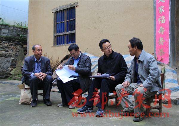 縣委書記梁濤在貧困戶家中調(diào)研(左二為梁濤)