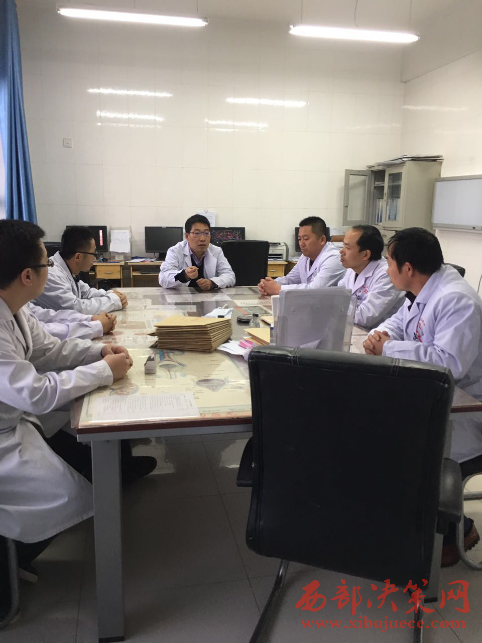 2017年元月5日一早,我和陶懷夫同志來到靖邊縣人民醫(yī)院泌尿外科主任辦公室,有位中等身材,戴著高度近視鏡子的中年男子,剛從手術(shù)室出來,還未來得及搭理我們,就匆匆走進(jìn)了泌尿外科病房,一邊查看病人接受治療情況,一邊又和病人問長問短,不停地吩咐身邊的護(hù)士將每個病人如何用藥叮嚀的十分清楚,一連幾個病房的十幾位病人都是如此,當(dāng)他們查完病房和手下工作人員會診完回到辦公室后已經(jīng)到了中午下班時分了,就在和我們相聊的數(shù)十分鐘里,他還不停地接待病人的家屬,同時又叫來護(hù)辦護(hù)士將各床的病人情況了解的十分詳細(xì),讓她們隨時掌握了解清楚各床病人接受治療與康復(fù)的情況,并要求及時向他反饋信息。給人們的感覺,時間對他來說就沒有一點空閑,真是夠辛苦的啦,忙得不可開交。據(jù)旁邊護(hù)士介紹,他們天天如此,月月如此,年年如此!他就是全縣人民熟悉的靖邊縣人民醫(yī)院泌尿外科主任、副主任醫(yī)師馮勇同志。