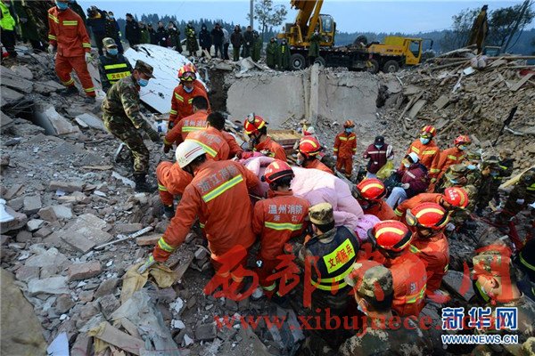 2月3日清晨,在浙江溫州文成民房倒塌事故現(xiàn)場(chǎng),救援人員救出第二名幸存者。