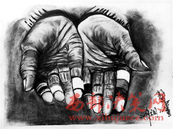 在李福昌家中,記者看到了他給保潔員畫的60張生活速寫。一眼望去,保潔員們神態(tài)、姿勢、動作各不相同,相同的是他們都正在辛勤地勞作。“畫得越多,對內(nèi)心的沖擊越大。”李福昌還特別細(xì)心地為每幅畫作都配上合適的詞。一幅手部特寫寫著“看到這雙手,請您不要再亂扔?xùn)|西了”。