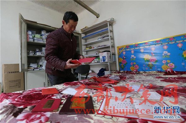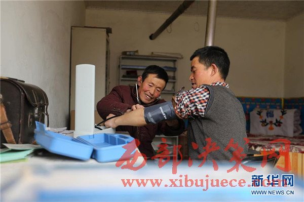 村醫(yī)牟天明在村民家中為患者診療(2月6日攝)。大年初十,在寧夏固原市西吉縣新營鄉(xiāng)二府營村泥濘的村道上,身高不足一米六的村醫(yī)牟天明背著醫(yī)療箱,一瘸一拐地前往離家5公里的患病村民家中。春節(jié)以來,這已是他第18次出診。年近六旬的牟天明在上小學(xué)時腿部突發(fā)疾病,由于當(dāng)時鄉(xiāng)村醫(yī)療條件有限,落下了終身殘疾。他沒有失去對生活的信心,從初中開始就自學(xué)醫(yī)學(xué)知識,1977年高中畢業(yè)后,牟天明回村做了一名赤腳醫(yī)生,這一干就是40年。 40年來,牟天明行醫(yī)始終站在患者的角度,讓村民跑最少的路、花最少的錢解除病痛。不論白天黑夜、風(fēng)霜雨雪,只要村民有需要,他就會背上醫(yī)療箱出診,足跡遍及二府營村的每一戶人家,被村民稱為村里的健康“守護神”。