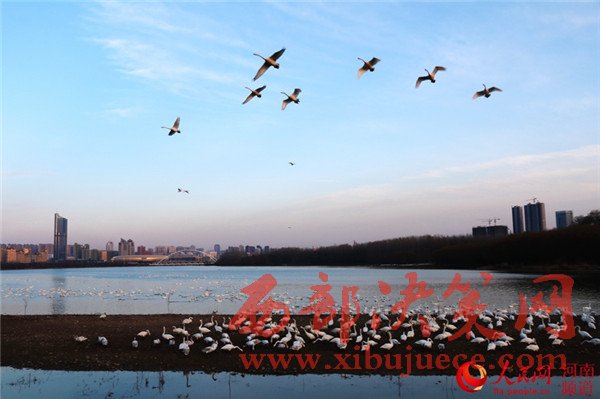 每年11月至來(lái)年2月,都會(huì)有數(shù)以萬(wàn)計(jì)的白天鵝,從遙遠(yuǎn)的北方經(jīng)過(guò)長(zhǎng)途遷徙來(lái)這里棲息越冬,因此三門(mén)峽市被譽(yù)為“天鵝之城”。在三門(mén)峽市天鵝湖城市濕地公園雙龍湖白天鵝觀(guān)賞區(qū)波光粼粼的湖面上,數(shù)千只白天鵝自由自在地飛翔,或安詳優(yōu)雅地結(jié)伴嬉戲,或溫情脈脈地交頸摩挲,或悠閑自得地以嘴梳理羽毛,或頸扎水中,翩翩跳起“芭蕾舞”。這些圣潔的仙鳥(niǎo),或飛、或游、或走、或臥,千姿百態(tài),構(gòu)成一幅幅美麗動(dòng)人的畫(huà)面。
