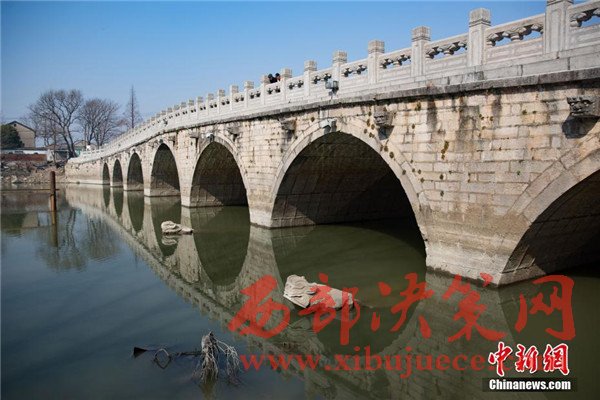 南京明代古橋七橋甕下四只“怪獸”露出水面