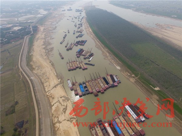 2月20日,船只擁堵在枯水期的湘江湘陰蘿卜洲航道內(nèi)。