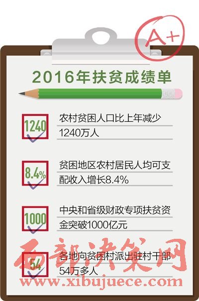 2016年,我國扶貧投入力度空前。財力投入上,中央和省級財政專項扶貧資金首次突破1000億元,其中中央財政667億元,同比增長43.4%。792個貧困縣啟動實施涉農(nóng)資金整合試點,實際整合到位資金約2300億元,惠及建檔立卡貧困人口3000多萬人。各類金融機構(gòu)加大扶貧支持力度,到2016年底,累計發(fā)放扶貧小額貸款2833億元,全國共有801萬貧困戶受益。人力投入上,各地共向貧困村選派駐村工作隊12.8萬個,派出駐村干部54萬多人。全國選派18.8萬名優(yōu)秀干部到貧困村和基層黨組織薄弱村擔(dān)任第一書記,提升帶動群眾脫貧能力。