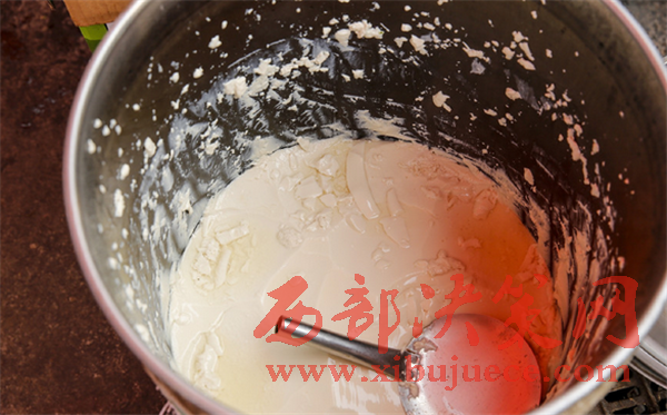 在餅上雙面澆油,熟透了以后會金黃金黃的。