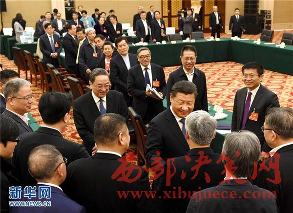 3月10日,中共中央總書記、國家主席、中央軍委主席習近平參加十二屆全國人大五次會議新疆代表團的審議。新華社記者李濤攝